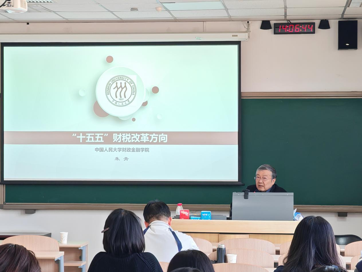 2026-04-022026年4月1日,中国社会科学院大学应用经济学院税务硕士教育中心“税收前沿”专题讲座在研究生教学楼302室顺利举办。本次讲座特邀中国社会科学院大学客座教授、中国人民大学财政金融学院朱青教授主讲,主题为“‘十五五’财税改革方向”,2025级税务硕士及相关专业研究生到场学习交流。图1 朱青教授讲座中朱青教授结合最新宏观经济数据与国家政策导向,系统分析当前我国经济运行态势:出口稳健、投资偏弱、消费温和复苏,经...
