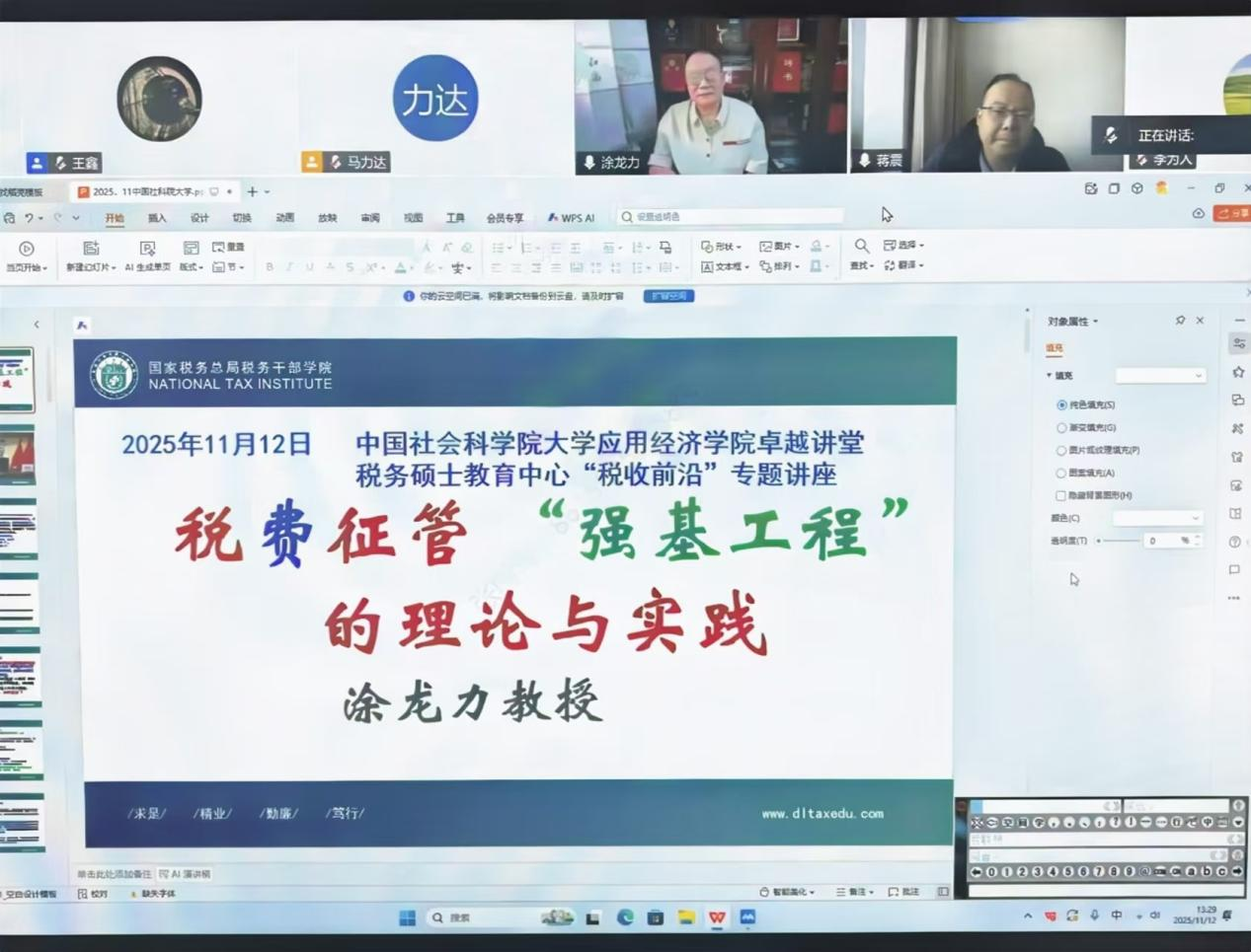 2025-12-012025年11月12日,中国社会科学院大学应用经济学院卓越讲堂(第九十三讲)暨税务硕士教育中心“税收前沿”专题讲座于线上腾讯会议成功举办。此次讲座特别邀请原国家税务总局扬州税务学院副院长、中国税务学会第五、六届学术委员会研究部召集人、原中国税法研究会副会长、中国注册税务师协会和中国国际税收研究会原理事涂龙力教授作为主讲人,讲座主题为“税费征管‘强基工程’的理论与实践”。本次讲座由中国社会科学院大学应...