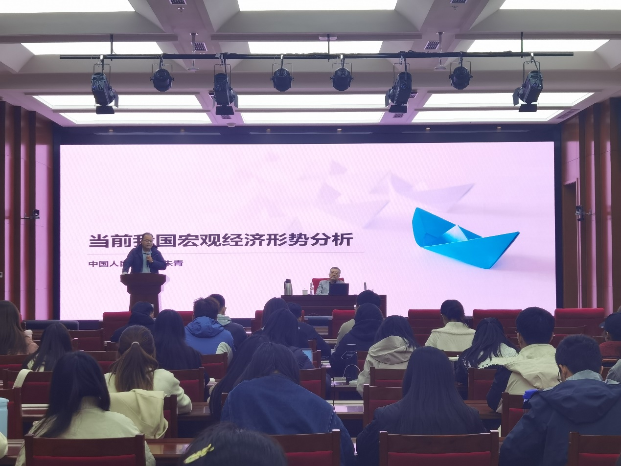 2025年10月22日,中国社会科学院大学应用经济学院卓越讲堂(第九十一讲)暨税务硕士教育中心“税收前沿”专题讲座于良乡校区教学综合楼报告厅418成功举办。此次讲座特邀中国社会科学院大学客座教授,中国人民大学财政金融学院教授、博士生导师朱青担任主讲嘉宾,讲座主题为《当前宏观经济形势与财税形势》。讲座由中国社会科学院大学应用经济学院党委书记蒋震主持,2025级税务硕士全体同学及其他相关专业部分同学到场聆听。
